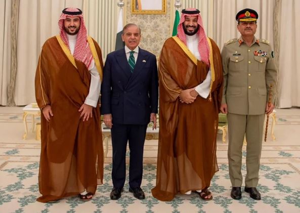 जियो न्यूज की रिपोर्ट के अनुसार, प्रधानमंत्री शहबाज शरीफ की रियाद की राजकीय यात्रा के दौरान ‘रणनीतिक पारस्परिक रक्षा समझौते’ पर हस्ताक्षर किए गए, जहां अल-यममाह पैलेस में क्राउन प्रिंस और प्रधानमंत्री मोहम्मद बिन सलमान ने उनका स्वागत किया।