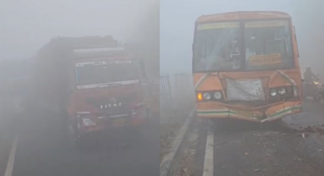 बरेली के फरीदपुर थाना क्षेत्र में रविवार को सुबह घने कोहरे के कारण हाईवे पर कोहराम मच गया। दिल्ली-लखनऊ नेशनल हाईवे पर कोहरे के कारण रोडवेज बस और कार समेत 20 वाहन आपस में टकरा गए। हादसे में करीब 24 लोग घायल हुए हैं। हादसे के बाद हाईवे पर जाम लग गया। मौके पर पहुंची पुलिस ने क्रेन की मदद से क्षतिग्रस्त वाहनों को हटवाया। इसके बाद यातायात सुचारू हो सका।